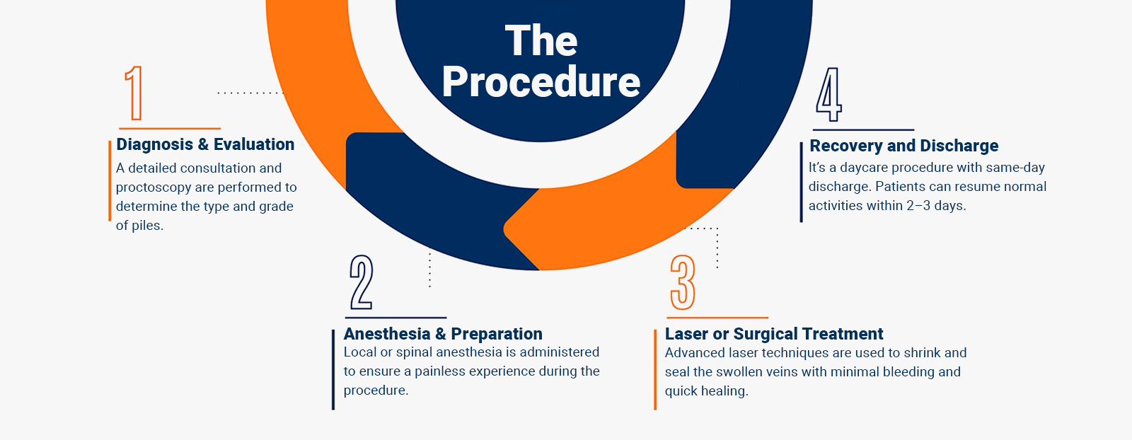 After laser piles treatment, most patients resume regular work within 2–3 days. It’s essential to maintain a fiber-rich diet, drink plenty of water, and avoid prolonged sitting. Regular follow-ups help ensure complete healing and prevent recurrence. Our medical team provides personalized guidance for smooth recovery and lasting comfort.